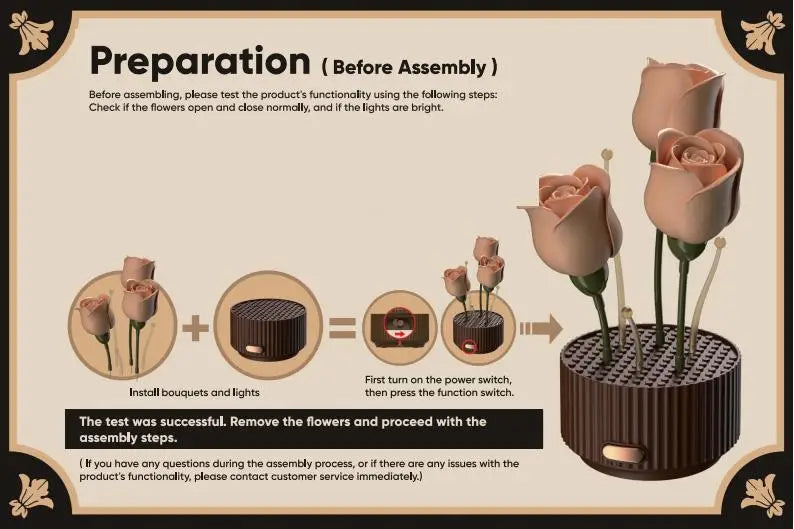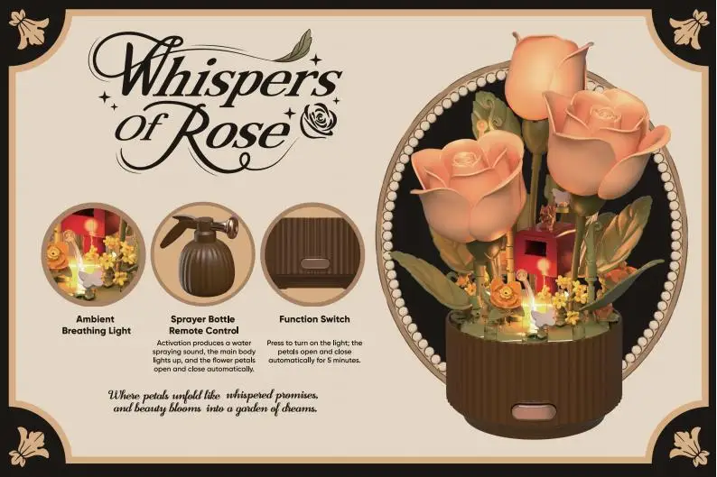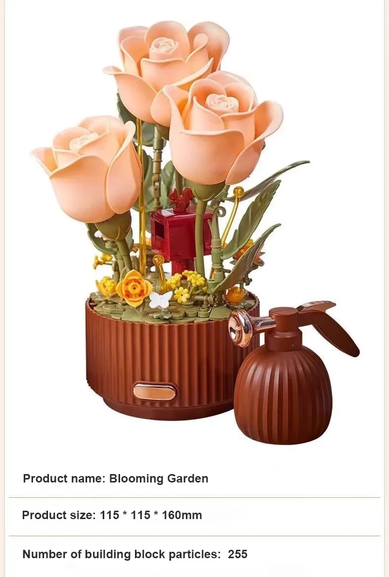 Dynamic Building Block Flower Electric Assembly Rose Bouquet Fairy Atmosphere High-end Decoration For Girl Handmade Wedding Gift